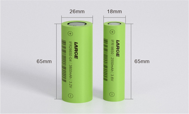 兩個電池的尺寸不一樣:IFR26650的直徑是26毫米,IFR18650的直徑是18毫米。