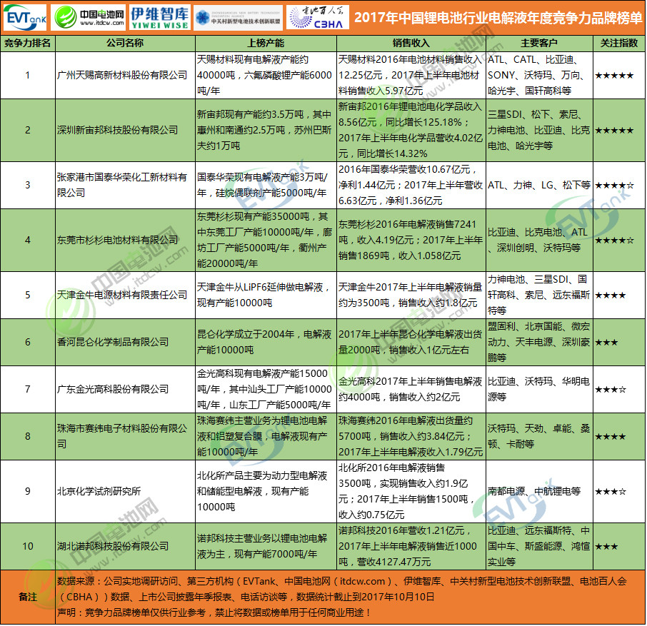 2017年度中國(guó)鋰離子電池產(chǎn)業(yè)鏈年度競(jìng)爭(zhēng)力品牌排行榜
