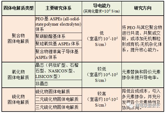 固體電解質是全固態鋰二次電池的核心部件,其進展直接影響全固態鋰二次電池產業化的進程。目前固體電解質的研究主要集中在三大類材料:聚合物、氧化物和硫化物。