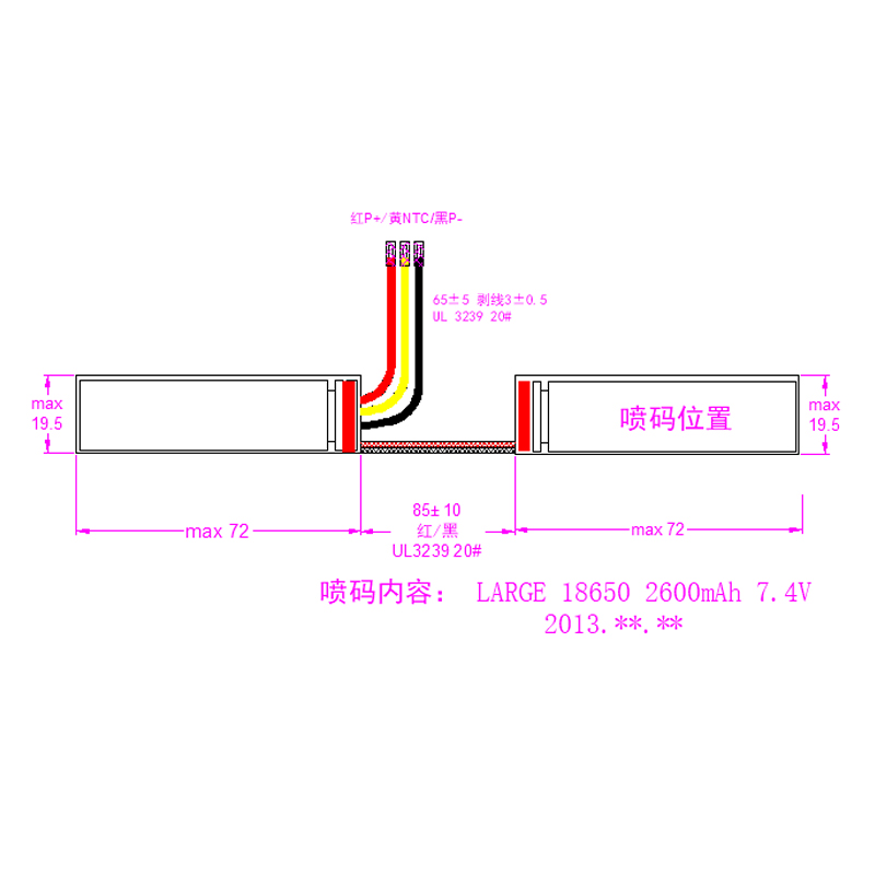 輸出方式:UL3239 20# 65±5 紅黑色線,剝線3±0.5mm